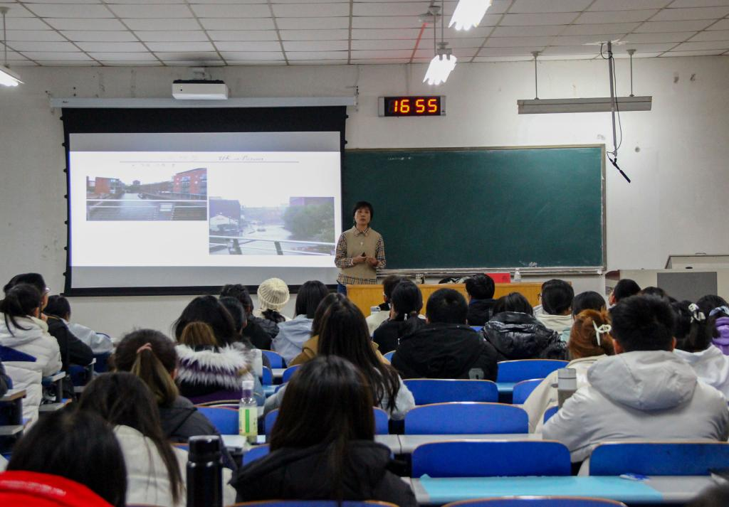 宋燕教授从英国的气候条件、植物类别、建筑风格和行为习俗等方面进行分享交流。首先,她从英国版图娓娓道来,详细介绍其组成部分和历史文化差异。随后,宋燕教授具体介绍英国海洋性气候,以图片展示英国花类品种,使学生深度领略异域风情。紧接着,她从英国建筑和政治制度等角度讲述英国国家特色,使在场学生受益匪浅、收获良多。最后,宋燕教授与同学们进行热烈交流并答疑解惑。