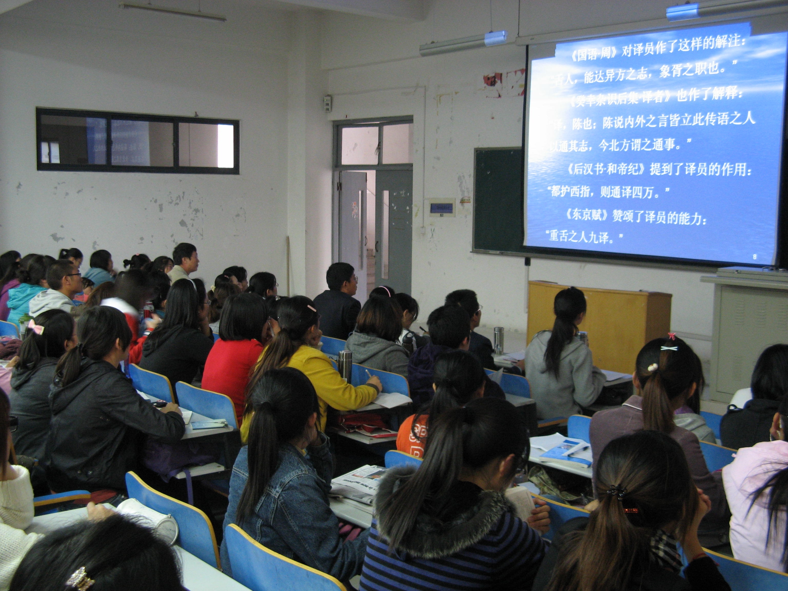 梅教授此次来我院做了题为《口译研究与培训》的报告。报告中,梅教授利用大量的实例和图片,深入浅出、循循善诱,向学院师生讲解了英语口译研究与培训的重要性、方法以及技巧。梅教授幽默的语言、宽广的知识面赢得了听众的阵阵掌声。在随后的座谈中,梅教授针对我院的翻译硕士点建设提出了自己的看法。他认为翻译师资的培养以及翻译研究方向的建设是重点,同时还要重视教材、实验设备等硬件的配置。