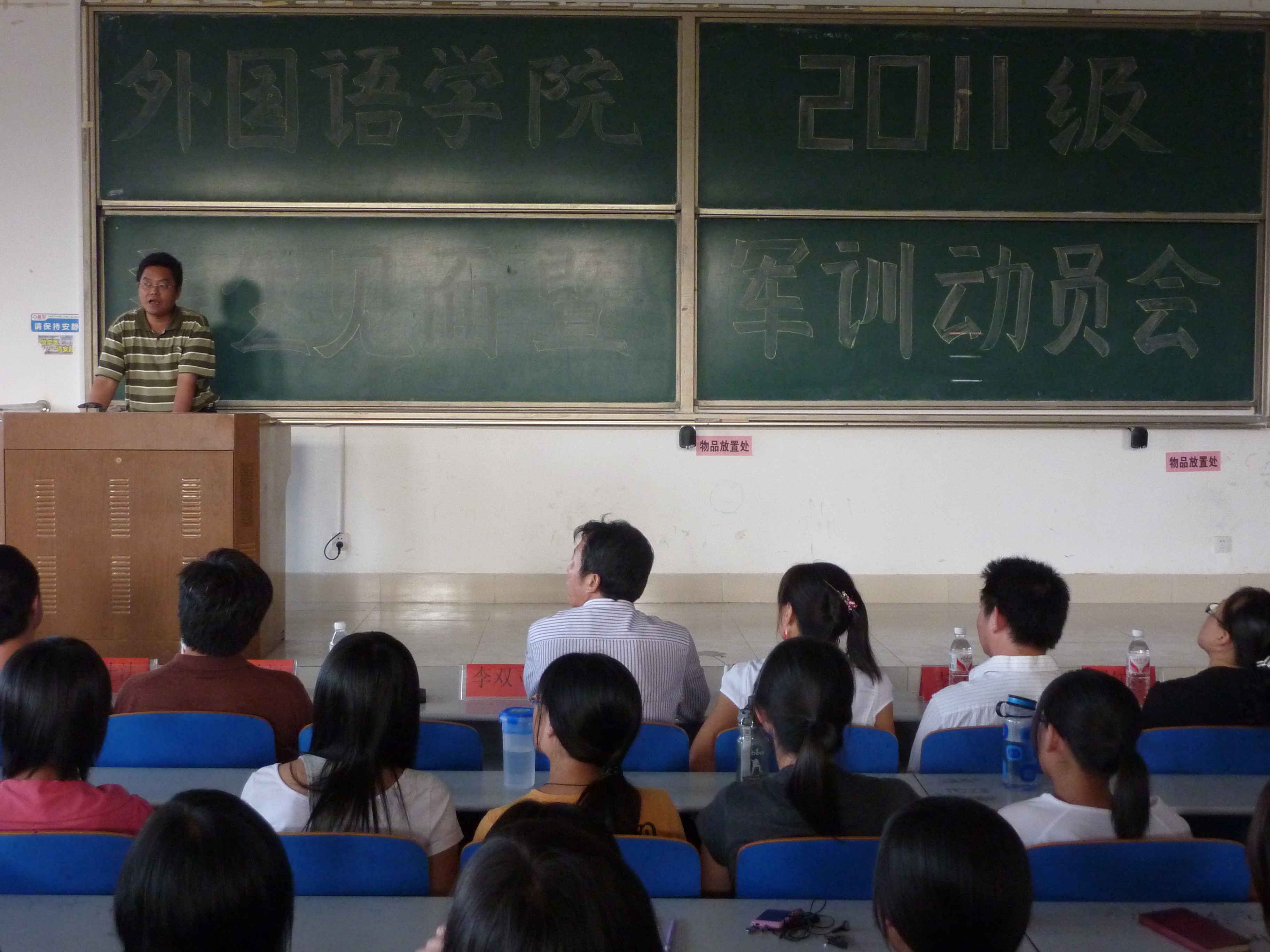 9月4日下午,bwin·必赢(中国区)官方网站-officialswebsi2011级新生见面会暨军训动员会在一号楼228教室隆重举行。bwin·必赢(中国区)官方网站-officialswebsi党委书记李双立副教授、院长彭建武教授,副院长宋燕副教授、宋建福教授、陈士法教授和日语系主任李守波老师、教师代表翟红华教授、团委庞晖老师,2011级新生辅导员周姗姗老师和bwin·必赢(中国区)官方网站-officialswebsi2011级新生参加了见面会。会议由团委书记杜中华主持。