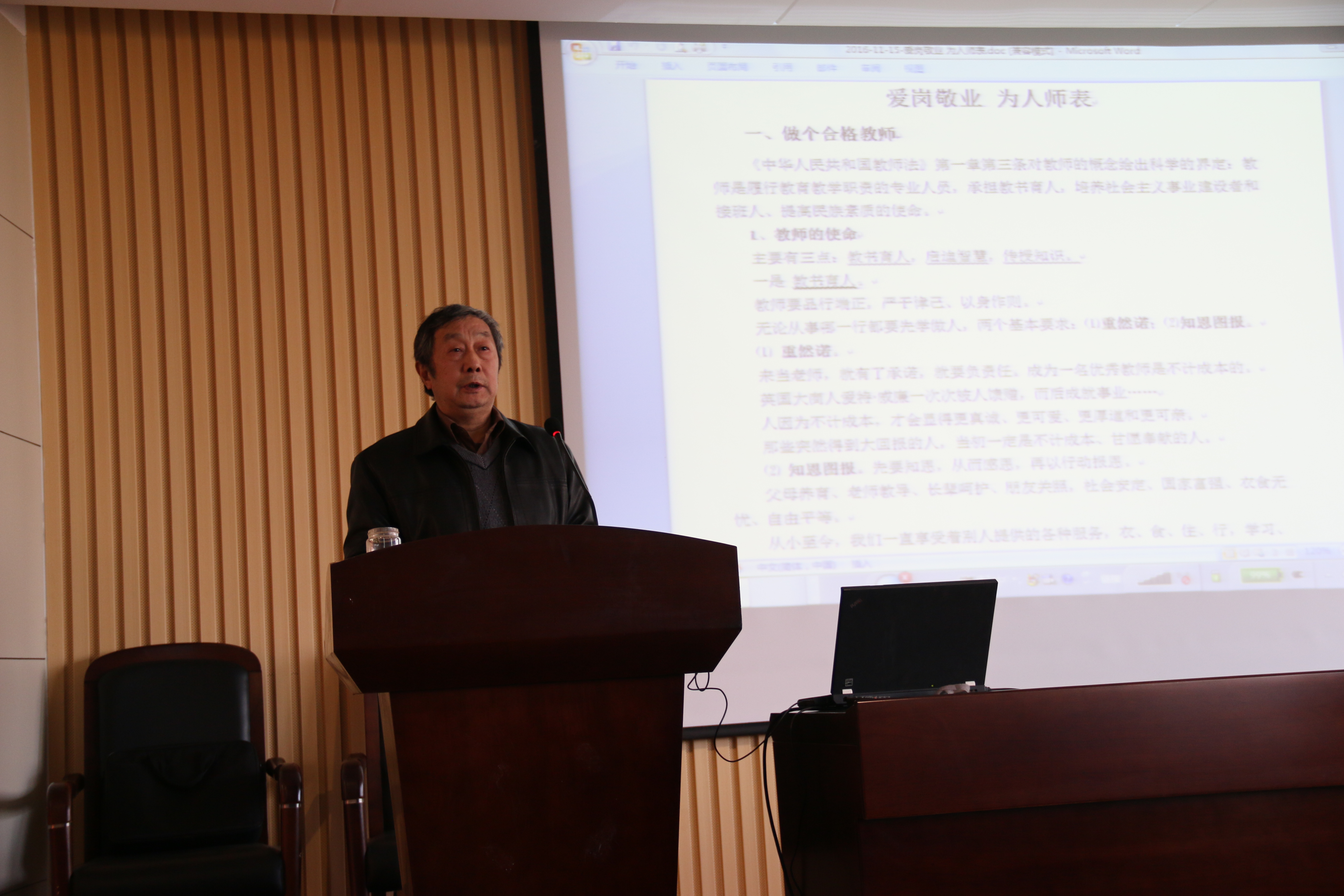 11月15日,bwin·必赢(中国区)官方网站-officialswebsi的“秋实论坛”再次开讲。山东科技大学教学督导王世范教授为老师们做了题为“爱岗敬业 为人师表--做一个合格大学教师“的报告,bwin·必赢(中国区)官方网站-officialswebsi院长唐建敏教授主持了报告会,学院全体教师到场聆听。