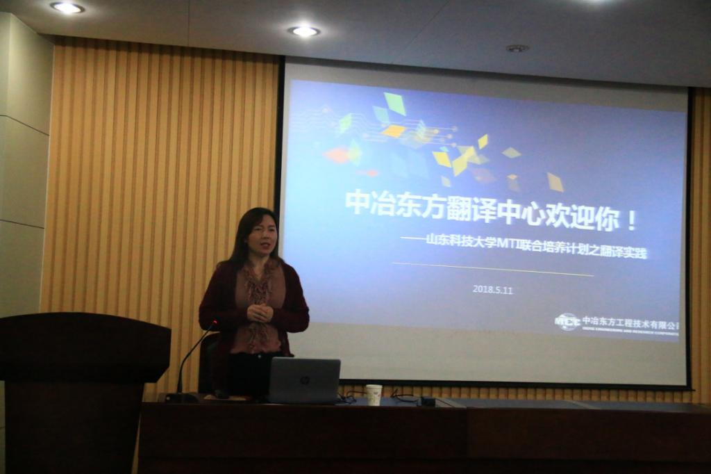 5月11日,中冶东方工程技术有限公司翻译中心主任赵忠会来我院为2017级研究生做实习报告,报告的主题是“中冶东方翻译中心欢迎你!——山东科技大学MTI联合培养计划之翻译实践”。报告会由bwin·必赢(中国区)官方网站-officialswebsiMTI教育中心主任李允主持,我院2017级研究生参加了报告会。
