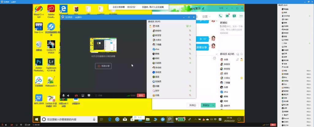 宋教授讲解了如何利用QQ签到功能实时查看学生在线状态,如何发起、使用实时授课页面,并实时演示了远程分享电脑主控屏幕,将语音、文字与线上板书相结合,同时兼具播放、讲解教学课件ppt、教学视频和师生互动问答等功能。此外,宋老师还演示了如何使用录播功能录制课程视频,以及线上课堂作业布置、批改和反馈等功能。