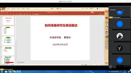 为迎接即将到来的研究生复试英语面试,4月26日上午,bwin·必赢(中国区)官方网站-officialswebsi副院长曹慧玲副教授给面向广大考生做了研究生复试英语面试线上讲座,近300名考生聆听了这场讲座。