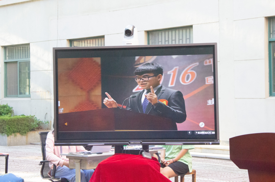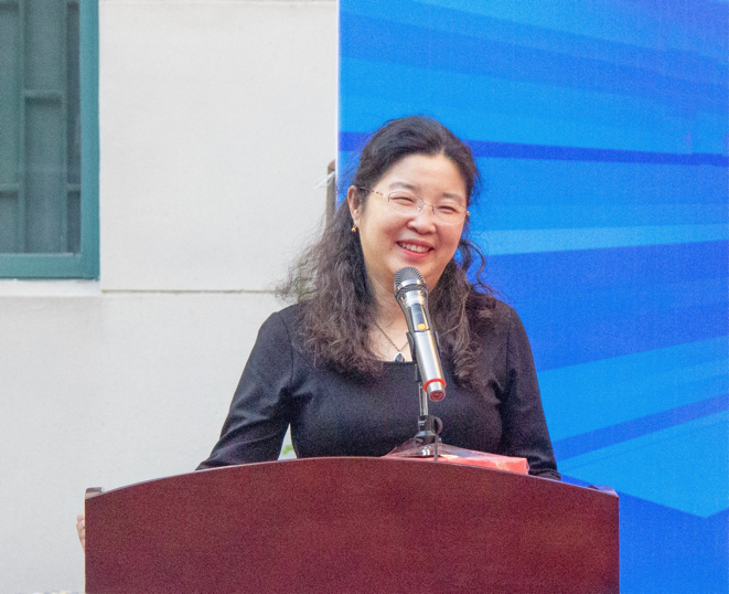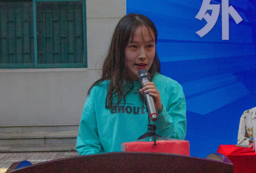 校友代表2000级英语专业、青岛海洋高科信息科技有限公司董事长金志伟发言。金志伟回顾了自己在母校的美好学习时光并结合自己的发展经历畅谈了对专业的认识和体会,鼓励同学们在大学要学好专业知识、保持良好心态、多读书丰富视野、建立良好人际关系、培养兴趣爱好。校友代表2014级英语专业路庆波通过录播形式,表达对母校的感恩与怀念的同时,也向大家分享了大学时期的感受与经验。他表示:希望大家在大学生活中都能仰望星空,脚踏实地;着眼未来,埋头苦干;不忘初心,方得始终。