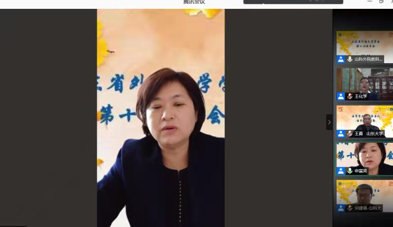 申富英介绍了举办“山东省外国文学学会年会”的意义。她说,非常感谢山东科技大学在非常时期承办此次会议,希望通过此次年会促进山东省外国文学研究的新发展。