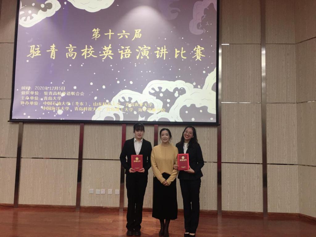 12月5日,第十六届驻青高校英语演讲比赛在青岛大学举行,该比赛是青岛地区高校英语演讲最高级别的传统赛事,来自中国海洋大学、中国石油大学、山东科技大学等8所高校的选手参加了比赛。我院日语专业学生张川慧子获得一等奖,英语专业学生李涵婧获得三等奖,英语系陈莹莹老师获得优秀指导教师奖。