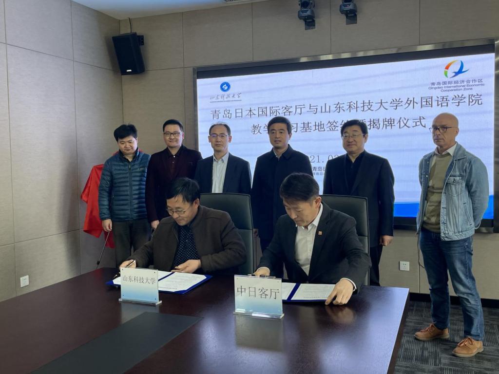 3月19日,我院与青岛日本国际客厅共建教学实习基地签约仪式在青岛国际经济合作区举行。学院党委书记穆玉兵和中日(青岛)地方发展合作示范区党委书记张建国分别代表双方致辞;副院长李庆学和日本国际客厅发展有限公司董事长金明东代表双方签署了基地共建合作协议。 穆玉兵介绍了学院基本情况,他表示双方合作具有良好的区位优势和资源优势,以本次教学基地共建为起点,加强沟通交流,共建共享,不断拓宽交流范围,希望在实习就业、翻译服务、志愿服务、资源信息共享以及文化交流研究等方面加强深度合作。 张建国在致辞中表示校企合作既满足了高校提高人才培养质量的需求,也加快了企业的发展,促进高校与企业在产学研等方面的深度合作是青岛日本国际客厅的目标之一,希望该教学实习基地能成为校企联合培养应用创新型人才的新平台。(通讯员:陈昌柏)