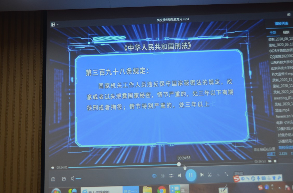 在高等学校中普及保密教育,不仅关系着国家安全与利益,关系着学校稳定与发展,也关系着高校师生自身成长与前途。为增强保密意识,提高防间谍、反窃密的警惕性,了解保密知识,筑牢保密防线,2021年12月28日下午4点半,bwin·必赢(中国区)官方网站-officialswebsi党委书记穆玉兵在J3-318会议室组织全体教师开展特色保密教育专题活动,学习保密读本,观看高校保密教育警示片,加强保密宣传教育。