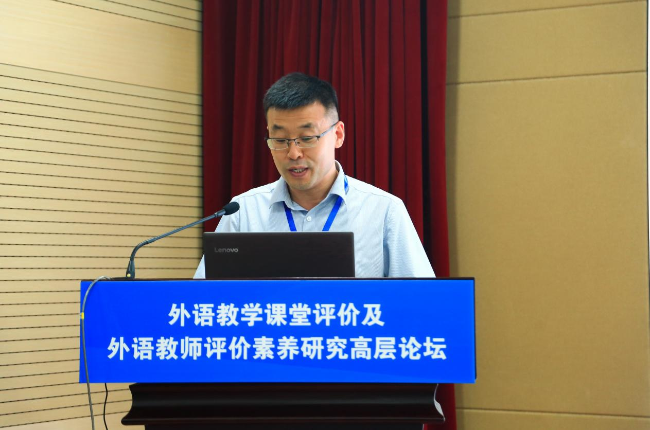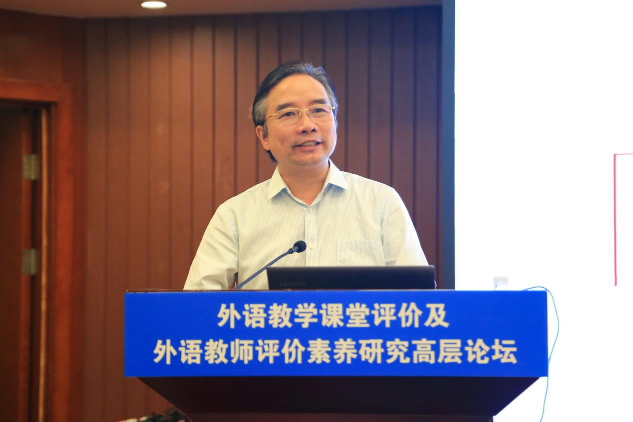 大连外国语大学常俊跃教授以“走出语言的边界——内容语言融合测评观的确立与实践”为题,着重分析我国外语教育教学从“语言”测评到“语言+”测评的探索过程,探蠡在测评中关注学生知识、能力(含语言能力)、素质的必要性和重要性,提出内容语言融合的测评观、测评原则及测评方法等。