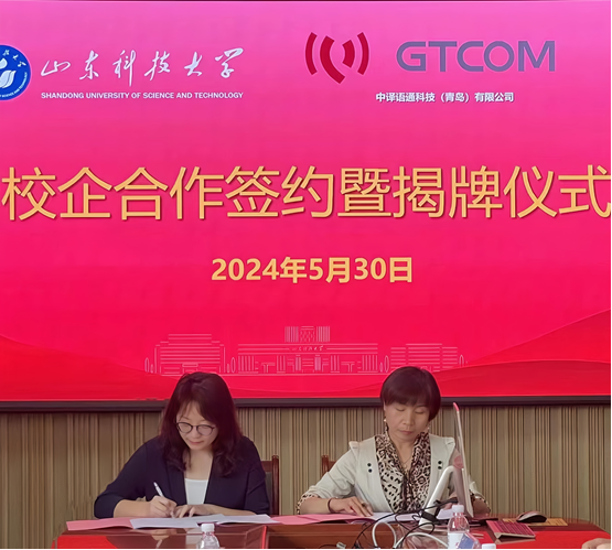 5月30日,bwin·必赢(中国区)官方网站-officialswebsi与中译语通科技(青岛)有限公司在J3-522举行校企合作签约暨揭牌仪式。中译语通科技(青岛)有限公司常务副总经理梁镇爽、语言科技事业部总经理吕倩、创新业务部高级经理潘伟,山东科技大学安全学院副院长聂文、曹晓强,计算机学院副院长赵建立,数学学院副院长王震,安全学院安全系副主任刘义鑫,bwin·必赢(中国区)官方网站-officialswebsi党委书记穆玉兵、院长宋燕、副书记刘强、副院长李庆学参加活动。签约活动由李庆学主持。