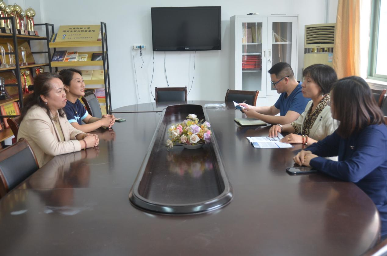 5月30日,上海一者信息科技有限公司鲁豫大区总监刘红梅与山东思迈智创科技有限公司王丹一行来我院交流。学院院长宋燕、副院长李允、院长助理王明亮热情会见了客人。 交流会上,宋燕院长对前期双方交流合作所取得的成效给予了充分肯定,她表示这些成果令人欣喜,同时也非常期待双方能进一步扩展合作的广度和深度,为学院的发展以及人才培养带来更多积极影响。 刘红梅总监随后详细介绍了公司的业务范围、先进的技术产品等。并且基于公司的优势与资源,就可能的合作领域和项目提出了极具建设性的建议。她表示非常愿意与学院携手,共同探索更多合作的可能性,为双方的发展创造更广阔的空间。 此次交流为双方后续的深入合作奠定了良好基础,双方均对未来充满信心,相信通过共同努力,必将在研究生联合培养、翻译实验室共建等方面取得更加卓越的成果,为教育事业的进步贡献力量。(通讯员:王明亮)