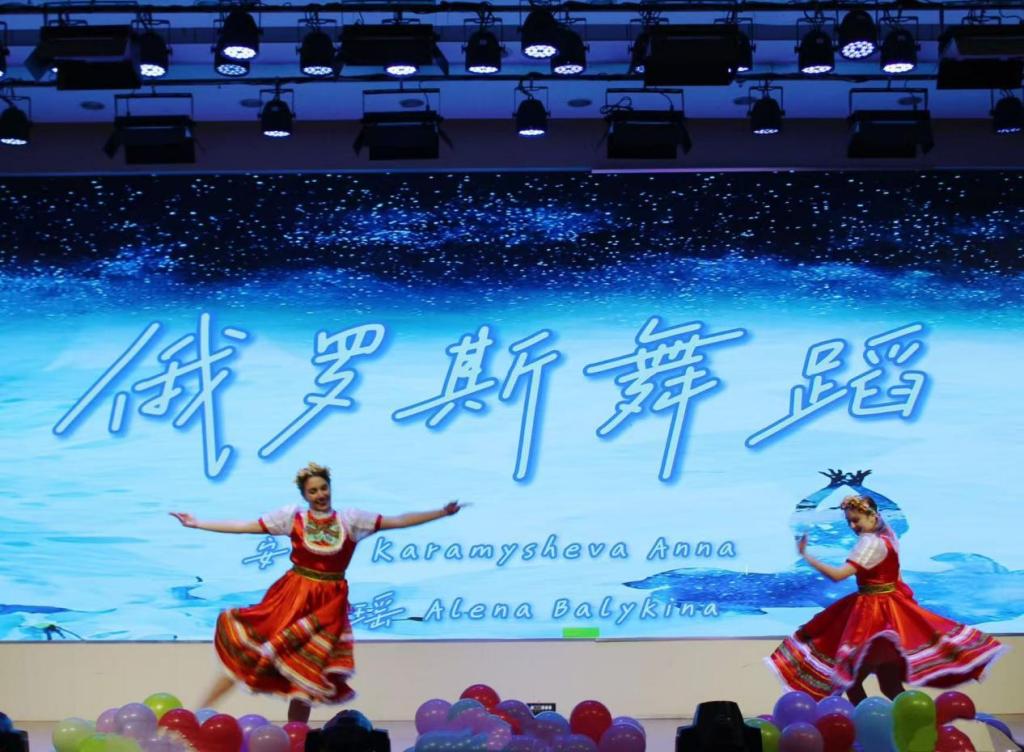 演出涵盖了多种语言和艺术形式,包括舞蹈、器乐队演奏、钢琴独奏、俄罗斯舞蹈等。同学们用流利的外语和精湛的表演,展现了对不同文化的理解与诠释,赢得了台下观众的阵阵掌声和欢呼声。其中,学院器乐队演奏的《风居住的街道》,让中国传统民族乐器与西式曲目碰撞出悦耳动听的旋律;赵小达老师深情演绎《一路上有你》,让全场师生共同回味起同窗与师生之间的那份温馨与感动;留学生安娜和张瑶以一曲俄罗斯舞蹈,展现了铿锵有力的舞步与浓郁的俄罗斯风情,令人眼前一亮;宋燕倾情演艺《勇气》,以饱含深情的歌声,将汇演推向了新的高度。现场气氛瞬间沸腾,欢声雷动,全体师生在这份温暖而坚定的力量中找到了共鸣。最后,汇演在bwin·必赢(中国区)官方网站-officialswebsi主持礼仪队带来的《穿越千年的华裳》走秀节目中落幕,跨越千年的中华传统服饰与现当代衣裙交织出一份特有的时尚。