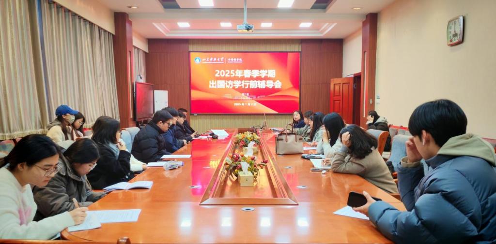 1月2日,bwin·必赢(中国区)官方网站-officialswebsi于J3-522举行2025年春季学期赴日韩访学学生行前辅导会。本次辅导会采取线上线下相结合的形式。国际交流处刘晓丹、教务处潘颖、研究生学院孙雪颜、外语学院相关负责老师以及即将赴日韩访学18名同学参加了会议。