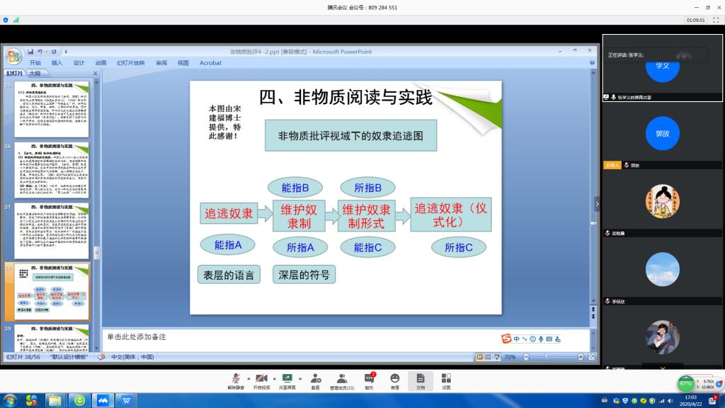 4月22日下午,bwin·必赢(中国区)官方网站-officialswebsi举办第十二期“外语学人”讲坛活动。bwin·必赢(中国区)官方网站-officialswebsi张学义副教授做了题为“汤姆·科恩的‘非物质批评'解读”的讲座。讲座通过腾讯会议平台举行。学院部分教师和学生参加了讲座。