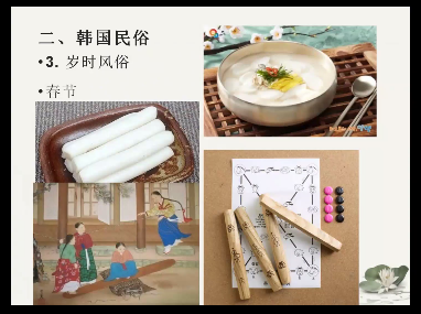 张老师首先从初期民俗学形成的背景及影响、二战后的民俗学、民俗学发展的里程碑等方面介绍了韩国民俗学的发展史,并通过具体事例展示了韩国村落及家庭生活、衣食住、岁时风俗、人生仪礼等风貌。