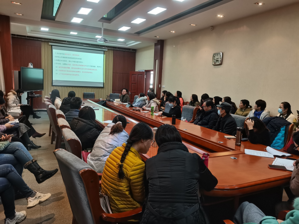 12月14日下午,公共外语教学部在J3-522举办了第二十二期“乐教讲坛”。曹慧玲副院长主持会议,公共外语教学部教师参加了此次活动。