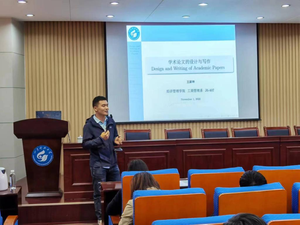王家坤副教授以“学术论文的设计与写作”为题,从立足管理问题、彰显研究贡献、融入理论基础、体现模型张力和确保逻辑严密五方面展开讲解。王老师通过个人分享、教师互动和案例分析等方法,让老师们充分理解论文设计与写作的关键问题。
