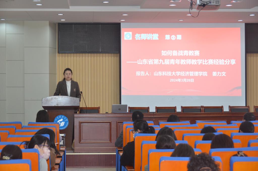 3月26日下午,bwin·必赢(中国区)官方网站-officialswebsi“名师讲堂”第二期在J3-318报告厅举行。经济管理学院姜力文副教授应邀为bwin·必赢(中国区)官方网站-officialswebsi全体教师做了题为“如何备战青教赛”的报告,分享了自己的比赛经验与感悟,助力外院教师在未来的教学比赛中取得佳绩。