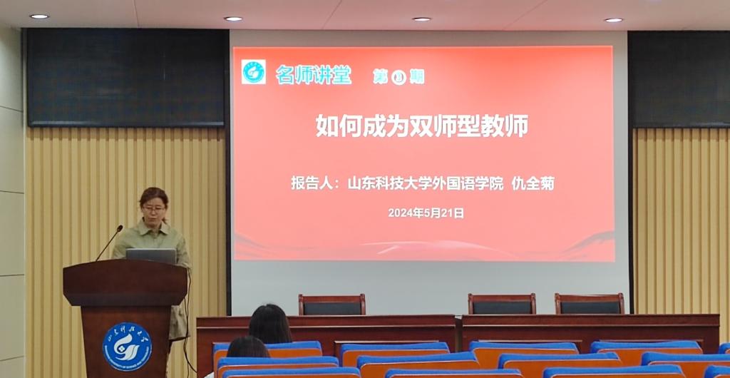 5月21日下午,bwin·必赢(中国区)官方网站-officialswebsi“名师讲堂”第三期在J3-318报告厅举行。bwin·必赢(中国区)官方网站-officialswebsi仇全菊副教授应邀为全体教师做了题为“如何成为双师型教师”的报告,分享了CATTI考证经验,鼓励老师们积极考取翻译证书。