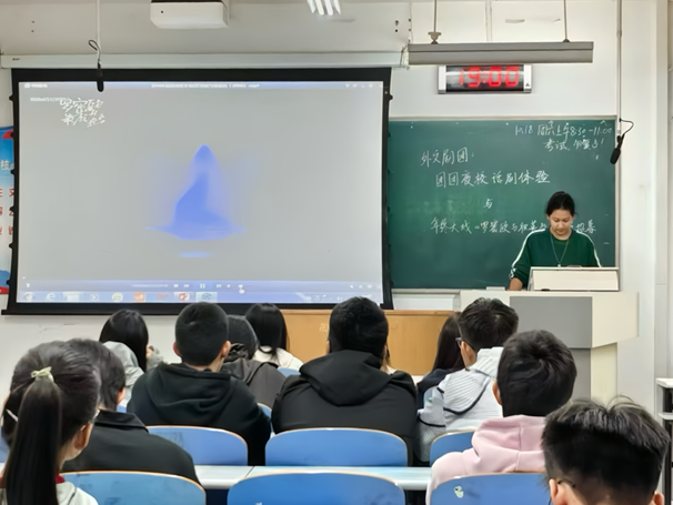 活动伊始,宣讲人系统介绍了话剧艺术的历史渊源与舞台特色,回顾了外文剧团的发展历程,并重点解读了新剧的创作背景、剧情脉络与角色设定。随后,现场播放了精彩的招募宣传片,动感的影像进一步点燃了同学们的参与热情。在试演环节中,同学们踊跃上台,自选剧本片段进行表演,充分展现了各自的表演潜力与艺术理解力。活动最后,有意向的同学与剧团成员围绕角色塑造、台词演绎等话题展开深入交流,现场气氛热烈,同学们纷纷登记报名。