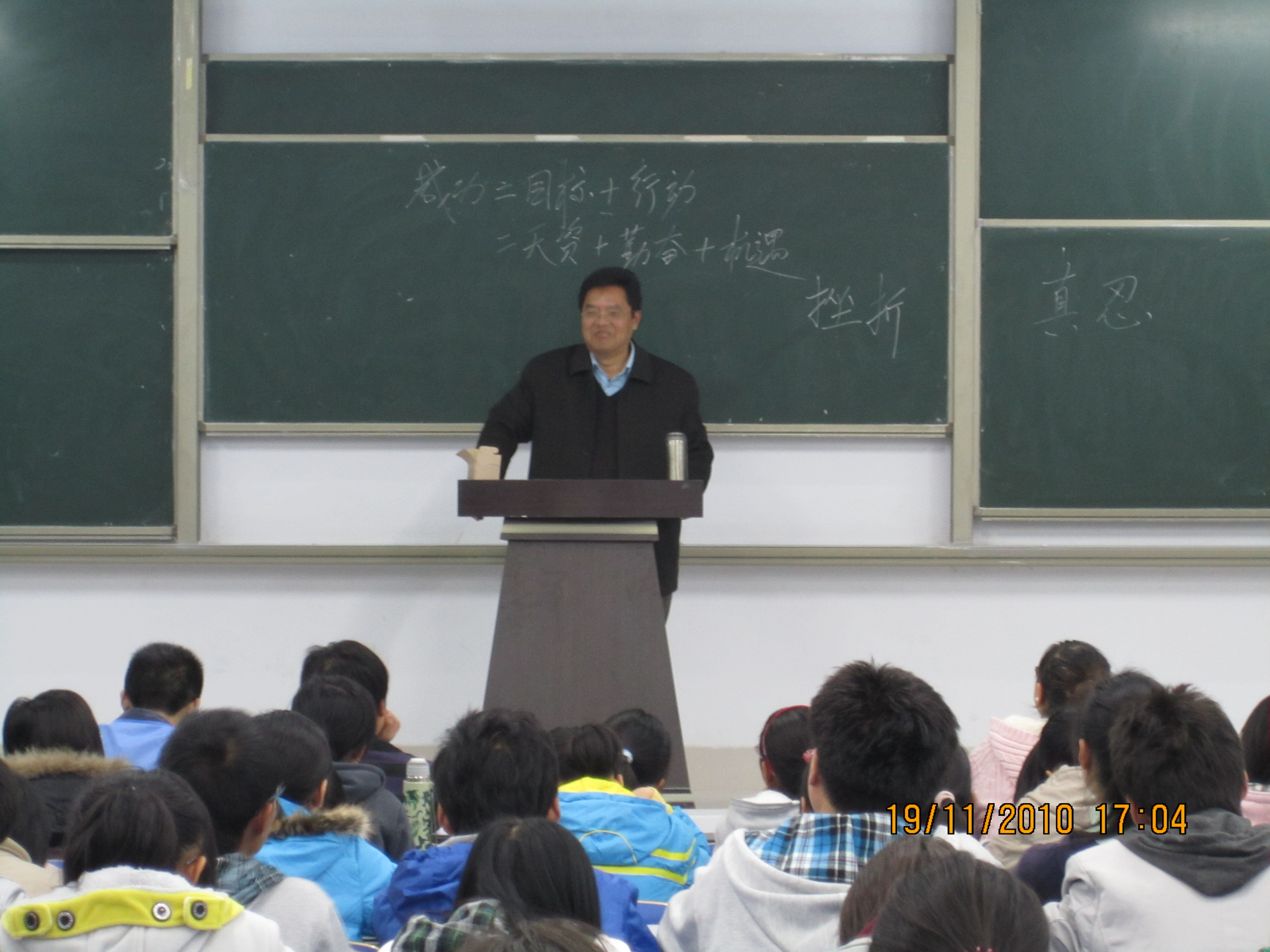 11月19日,外语学院党委副书记兼副院长李双立为学院2010级新生作思想教育报告。李书记以“如何解决大学新生入校所面临的问题”为主题,与同学们进行了交流探讨。 会上,李书记明确指出大学新生需要具备的能力和素质,要求同学们明确目标、树立远大理想。同时,李书记还提出培养良好的学习习惯、提高自身环境适应能力、正确处理情感、正视挫折和正确对待压力、加强安全意识等各方面的建议,使10级新生能更好地适应大学生活。李书记理论和实例相结合的讲解方式,使报告会更加生动有趣,赢得同学们阵阵掌声,会场气氛十分融洽。
