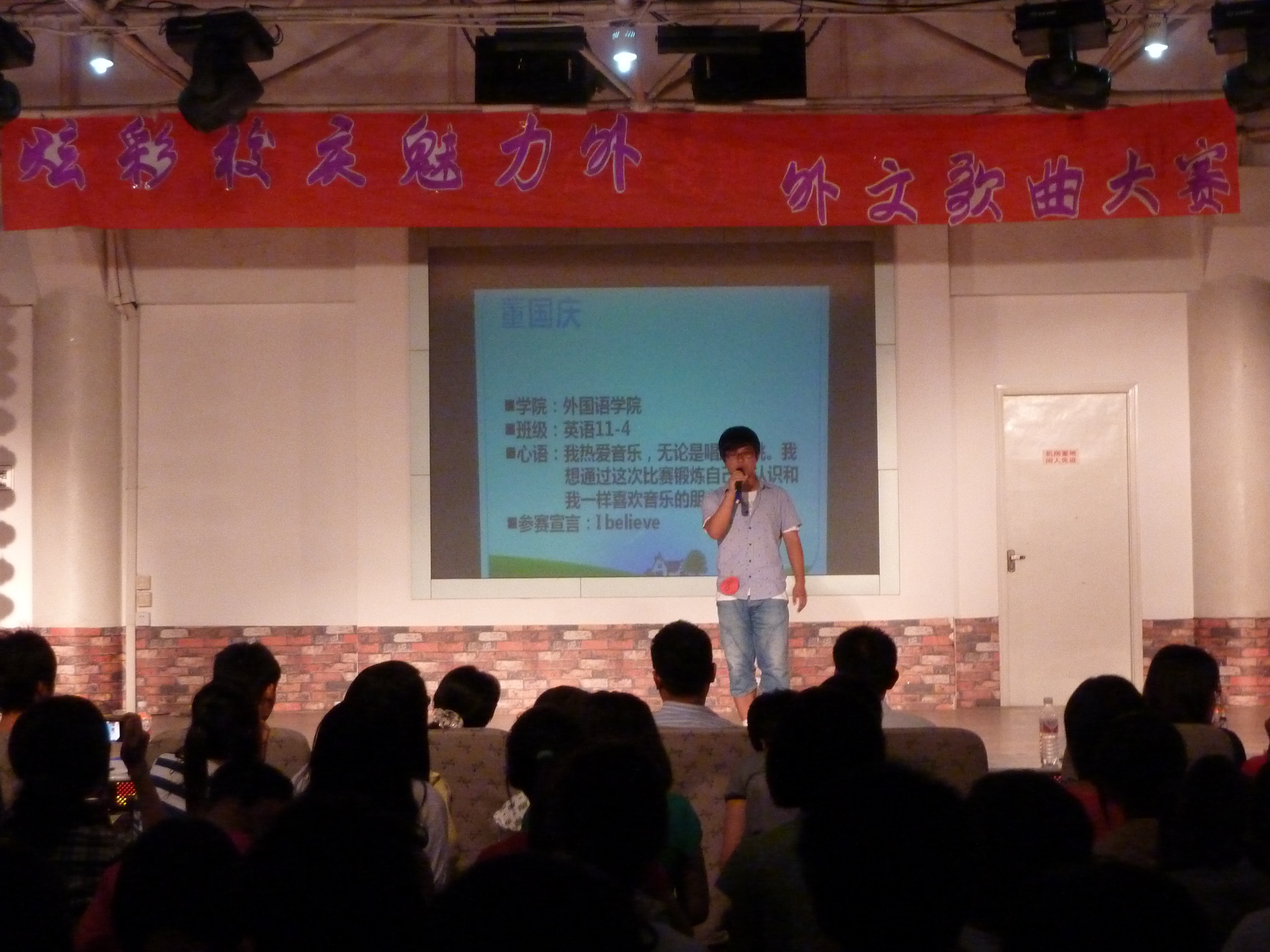 为喜迎我校60周年校庆,丰富新生课余生活,值此中秋佳节之际,9月12日,bwin·必赢(中国区)官方网站-officialswebsi举办“炫彩校庆,魅力外语”外文歌曲大赛。出席本次外文歌曲大赛的嘉宾有bwin·必赢(中国区)官方网站-officialswebsi党委书记李双立、团委书记杜中华以及团委周姗姗老师,担任本次外文歌曲大赛的评委有英语外教Mr.Krugh、Luke,bwin·必赢(中国区)官方网站-officialswebsi法语教师徐慧,bwin·必赢(中国区)官方网站-officialswebsi学生会主席孙兆岩,副主席于彬、孙瑞。