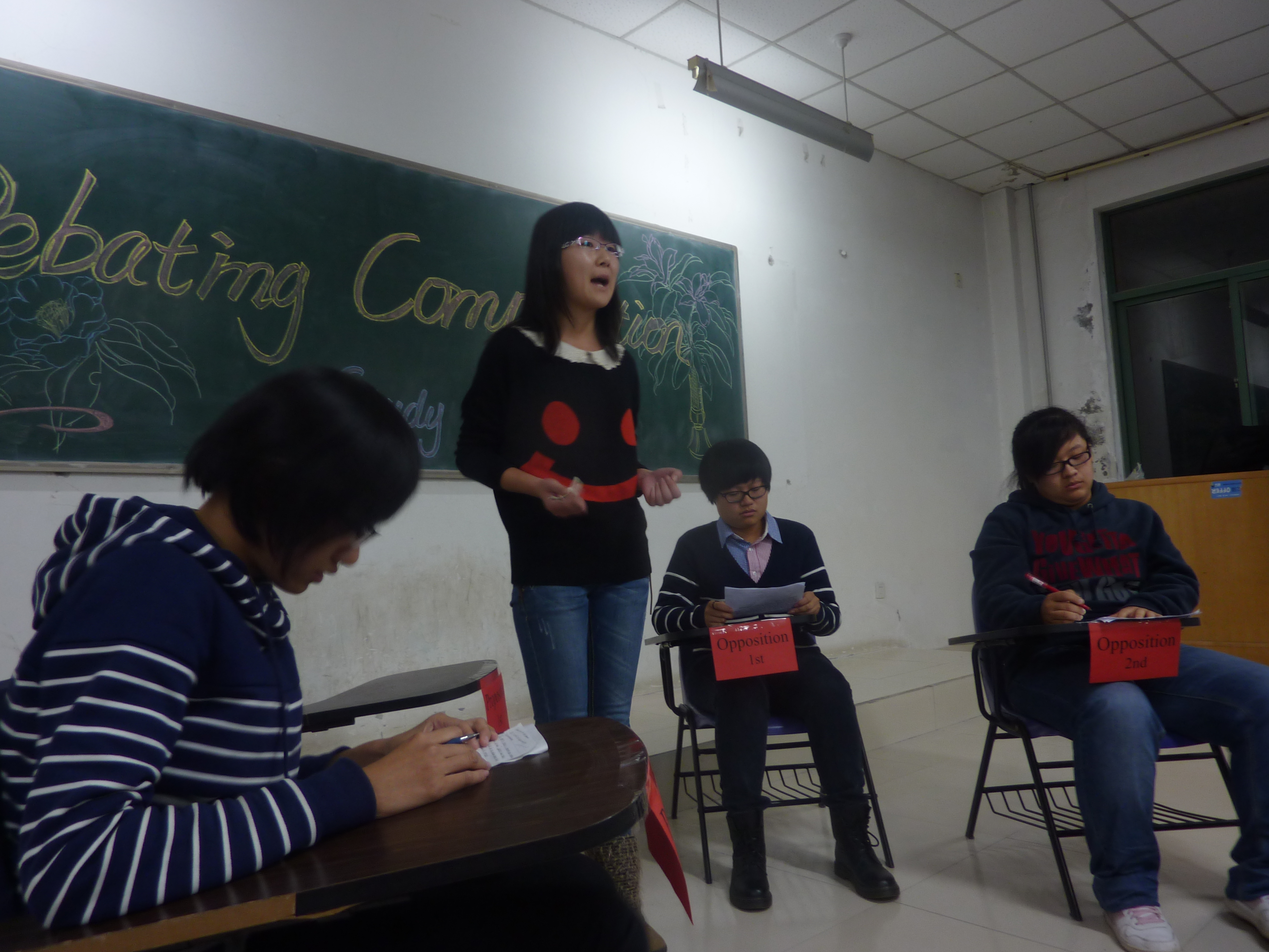 本次比赛共有16名选手进入了决赛,选手们被分成四组,每组4人,由第一组开始相继登场,各组围绕主题展开辩论。开篇立论之后,双方进行了攻辩,选手们旁征博引,运用大量的理论依据,慷慨陈词、言辞激昂,比赛的气氛渐渐升温,场下的观众也不停的用掌声来为辩手们鼓劲加油,整场辩论赛气氛激烈。辩论结束后,英语外教根据辩手们的表现进行了点评,现场给同学们阐述了辩论的基本要求及意义,辩手们虚心听取了他们的意见和建议,在场的同学们也受益匪浅。激烈的角逐之后,共选出2名一等奖,4名二等奖,10名三等奖。