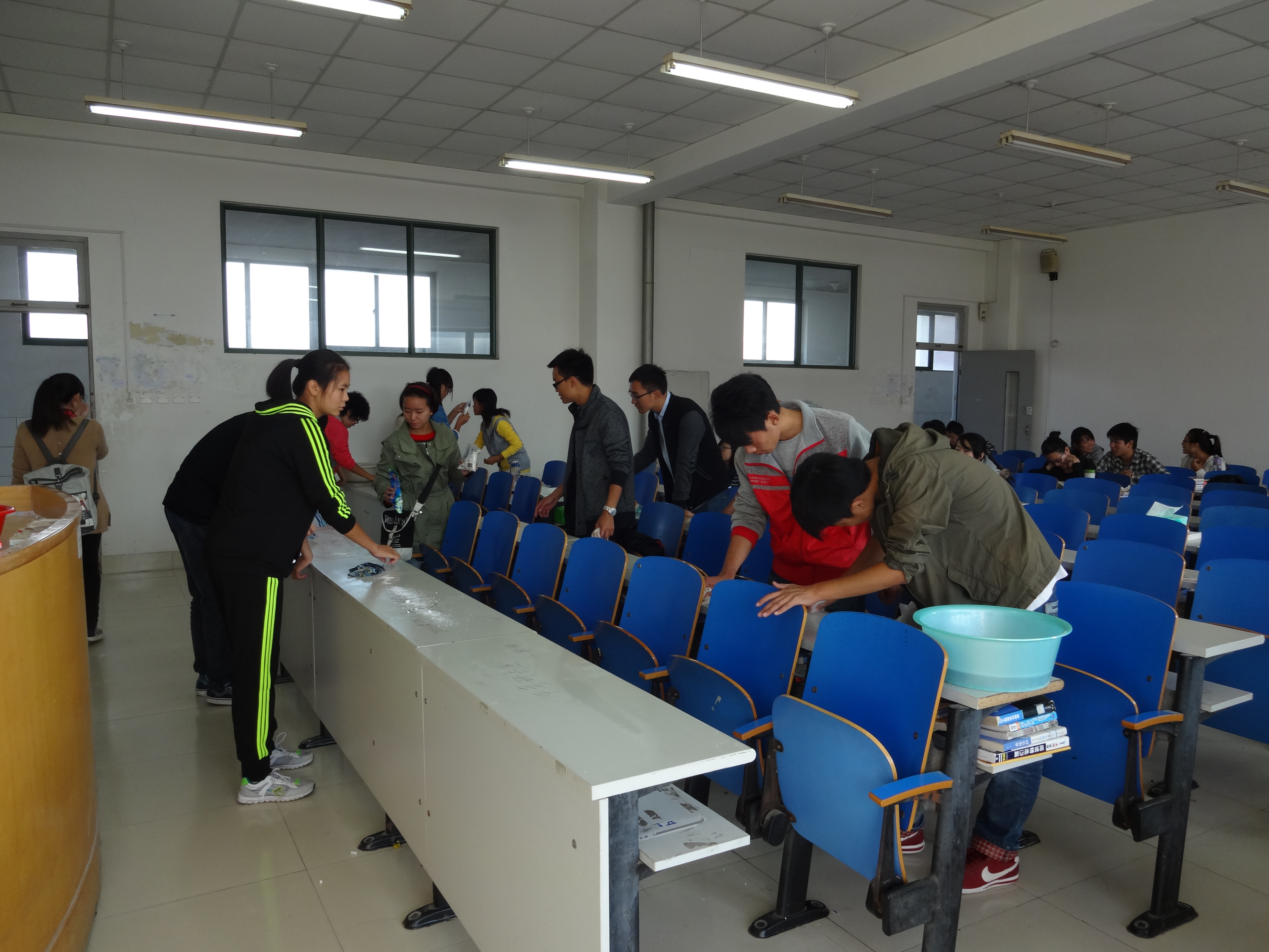为弘扬雷锋精神, 10月19日bwin·必赢(中国区)官方网站-officialswebsi青年志愿者联合会配合校大学生青年志愿者联合会开展了清理“课桌文化”志愿服务活动,青年志愿者协会组织百余名2013级新生对部分教室进行了全面彻底的清理。