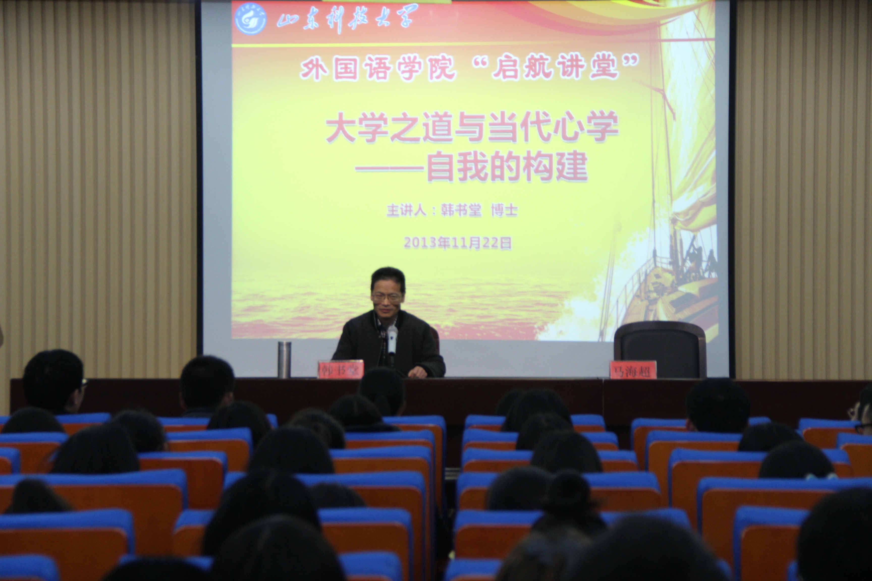 11月22日,bwin·必赢(中国区)官方网站-officialswebsi邀请山东财经大学美学研究所所长韩书堂博士作为主讲人,为bwin·必赢(中国区)官方网站-officialswebsi学生做了“大学之道与当代心学——自我的构建”主题讲座。