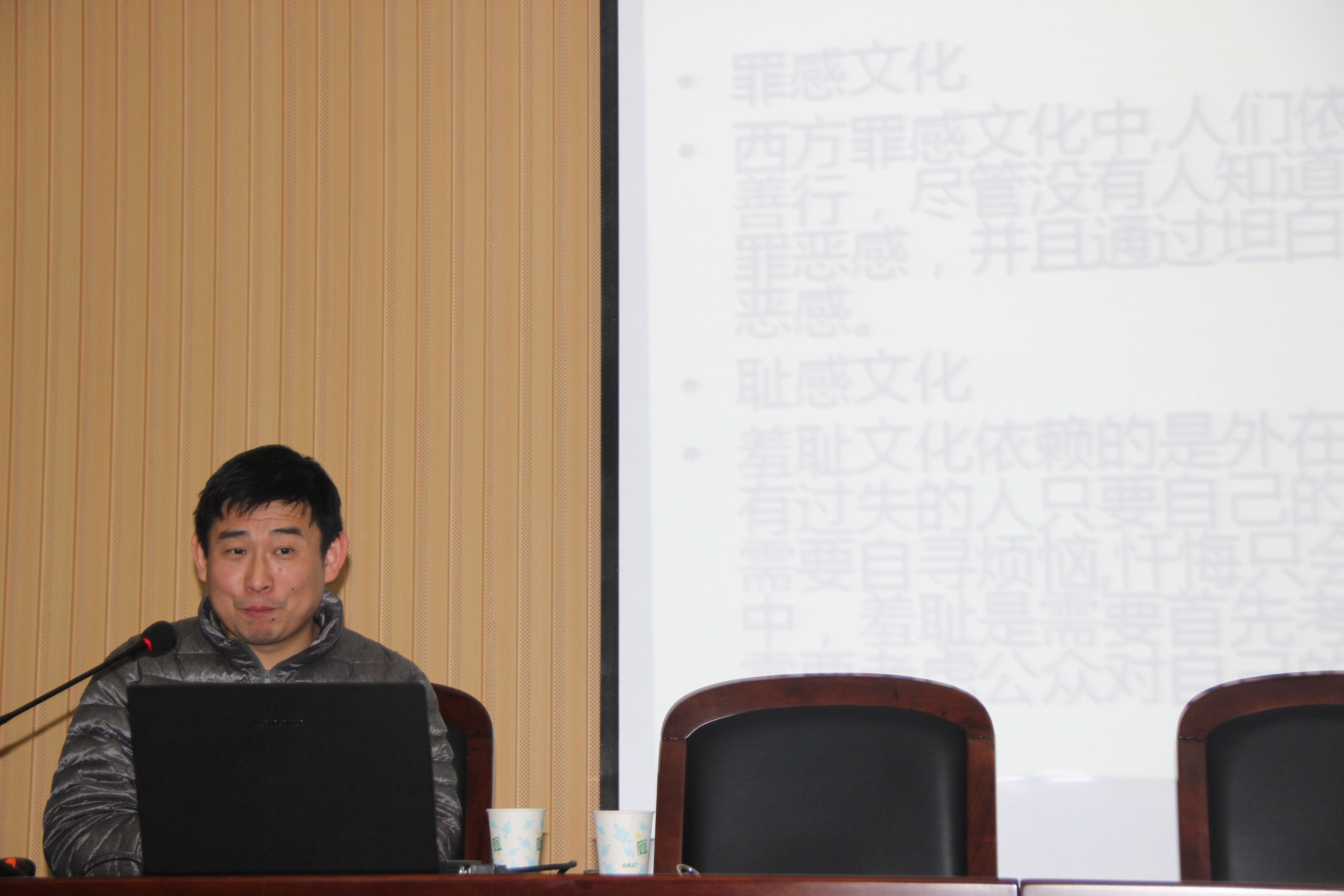 12月1日,由bwin·必赢(中国区)官方网站-officialswebsi团委主办,学生会承办的“视·界”文化交流分享会之“日本人民的民族性和价值观”日语讲座顺利举办,本场讲座特邀日语系主任李守波老师担任主讲。 本次交流分享会面向2014级与2015级全体日语专业同学。讲座伊始,李老师就中日人民互相的印象,日本的优势以及如何对待日本等话题与同学们展开热情互动,引起在场同学强烈共鸣。李老师以经典著作《菊与刀》为线索向大家生动具体地讲述了日本人的民族性、价值观等问题,并且就本部文学作品的作者、写作背景、内容等多方面进行了阐述,由浅入深,循序渐进。他指出,日本作为一个以大和民族为主体的国家,其严谨、努力、认真、团结有序等优点值得我们学习。他鼓励大家在学习语言知识的同时,理解文化内涵,培养兴趣,走出去,放远眼光。(通讯员:鲁盛 屈帅帅)