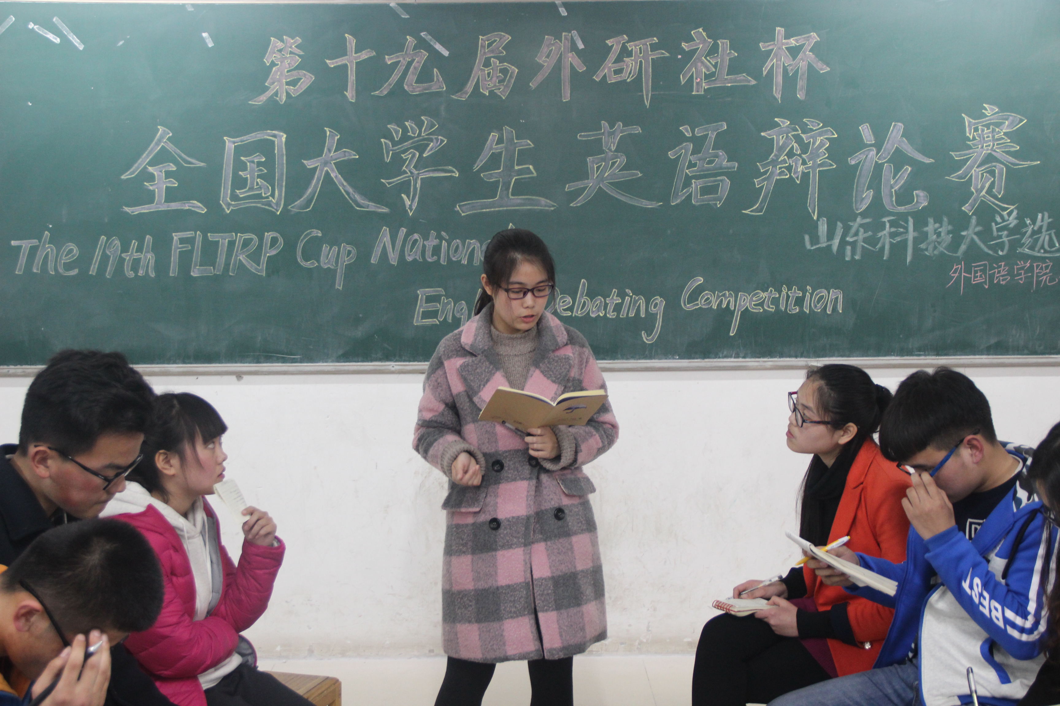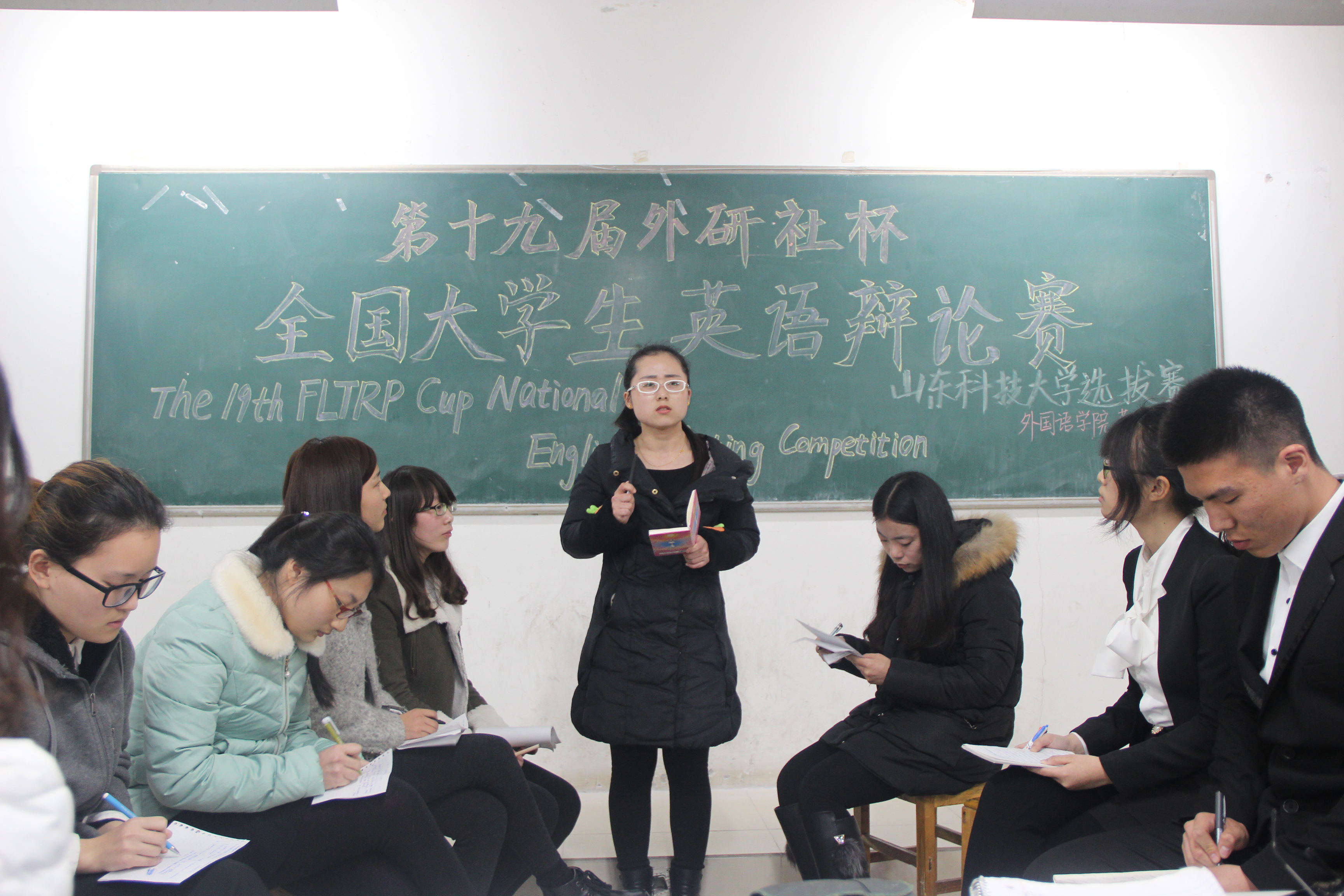3月18日,由bwin·必赢(中国区)官方网站-officialswebsi英语协会主办的第十九届外研社杯全国大学生英语辩论赛山东科技大学选拔赛初赛正式拉开帷幕。出席本次活动并担任活动评委的有李颖老师、赵慧老师以及外教Sandy、Josh等。