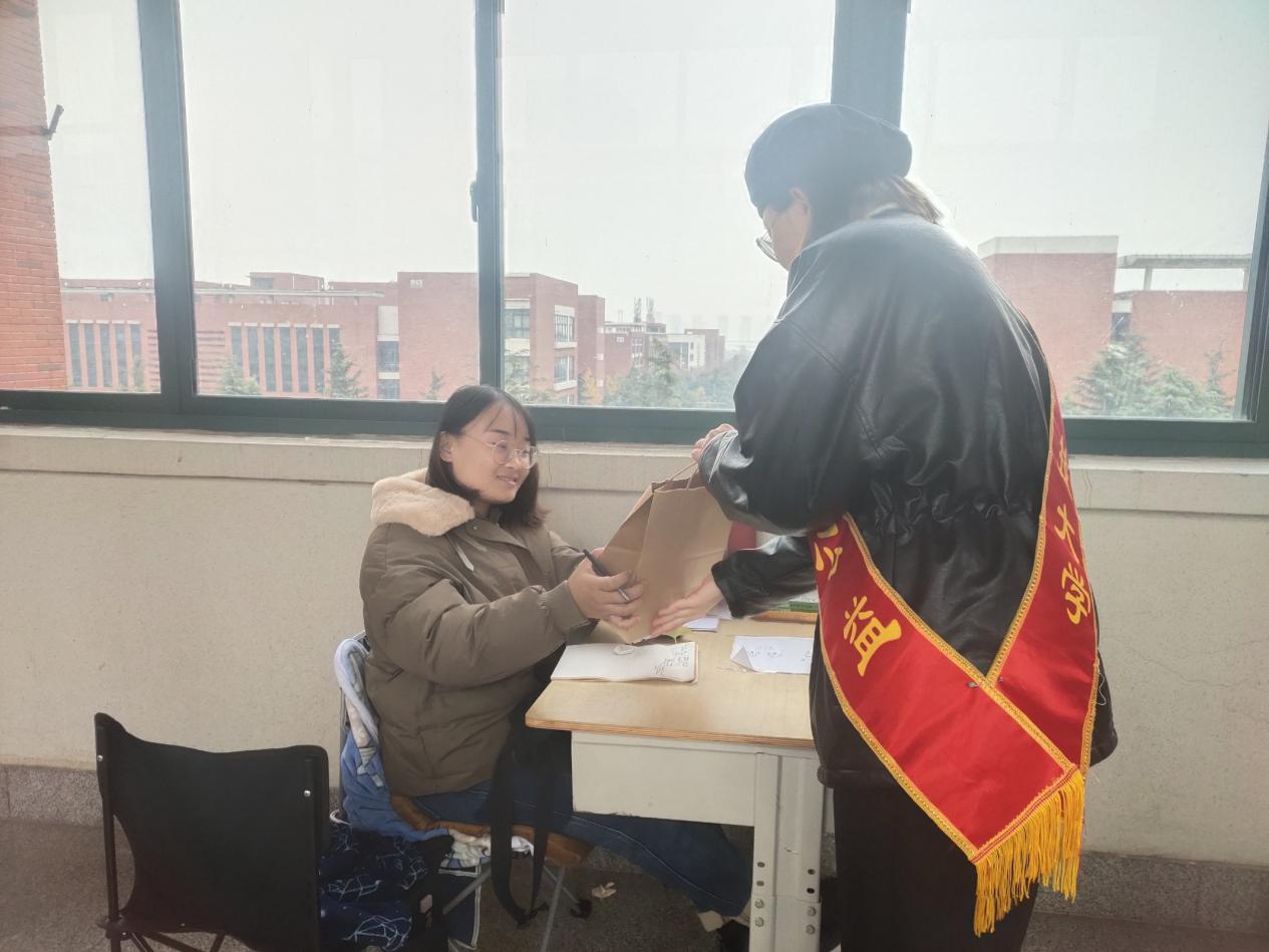 本次活动在寒冷的冬日为考研学子送去了温暖与祝福,也让志愿者们感受到了自律的魅力。祝愿为理想奋斗的考研学子们心想事成,考研顺利,都能考上自己心中的理想学府。(通讯员:郑妍彬)