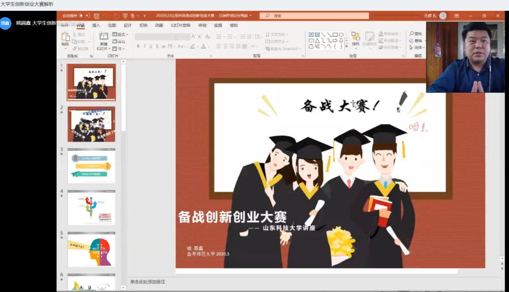 为加强职业生涯教育,引导学生建立创新创业价值目标,加深山科学子对大学生创新创业大赛的理解,培养学生的创新精神和创业意识,5月22日,由创新创业学院、学生工作处及团委联合主办、bwin·必赢(中国区)官方网站-officialswebsi承办的“大学生创新创业大赛解析”讲座在钉钉、新浪微博直播线上开展。本次讲座由曲阜师范大学副教授姚圆鑫担任主讲导师。bwin·必赢(中国区)官方网站-officialswebsi团委书记田禹主持讲座。