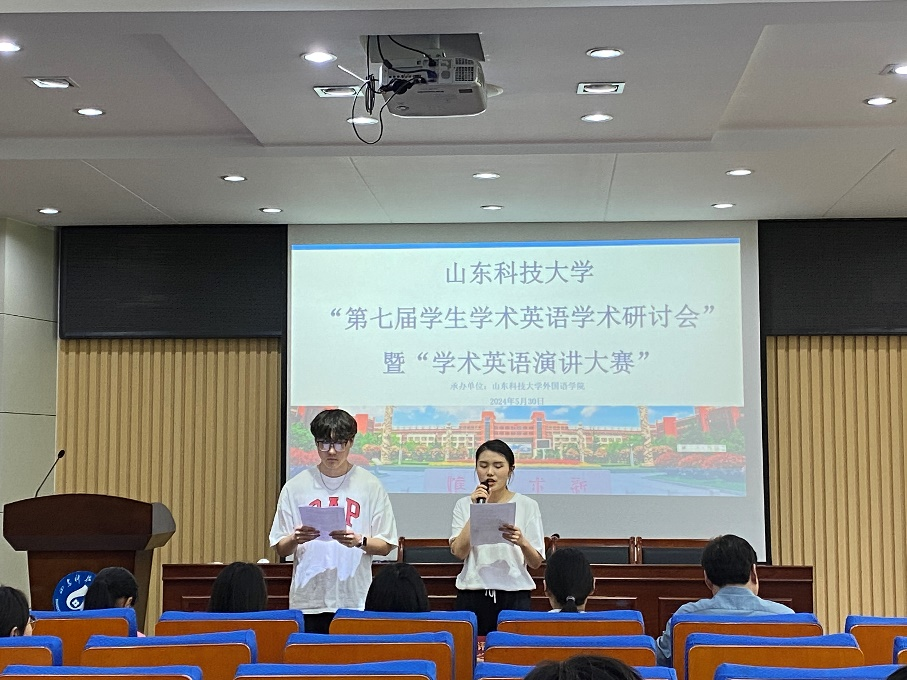 为响应国家培养具有国际竞争力的新工科、新文科创新人才,提高学生用英语进行科研创新和学术交流的能力,2024年5月30日“第七届大学生学生英语研讨会”暨“学术英语演讲大赛”决赛于J3-318举办。本次大赛由中国学术英语教学研究会主办,山东科技大学bwin·必赢(中国区)官方网站-officialswebsi承办。比赛评委由bwin·必赢(中国区)官方网站-officialswebsi陈超老师、王华老师、张卫东老师、迟雯雯老师,以及第六届学术演讲大赛的特等奖得主逄淑娟担任。
