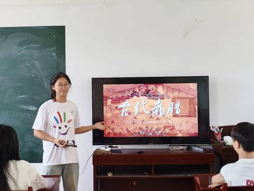 从乡村课堂到社区阵地,从文化传承到公益服务,青春力量积极投身于社会实践。英语2023-2班张晶在单县科学小课堂,把“密度”等抽象概念变成趣味实验,点燃孩子们探索科学的热情。英语2024-1班曹珍奔赴济宁市泗水县官庄村支教,用多彩课堂串联英语、天文等知识,带乡村孩子触摸更广阔的世界。英语2024-1班牛玉堃参与泰安市泰山区暑期托管班,陪伴孩子们刷题、做手工,在点滴日常里读懂教育的温度。英语2024-3班李凤萍投身泗水县支教活动,用互动游戏讲透儿童心理,为孩子们的心灵成长护航。英语2024-4班石欣雨扎根家乡济宁社区,借网络安全宣讲、短视频传播,为邻里筑牢“数字防火墙”。日语2024-1班杨紫露驻守济南槐荫图书馆,从研学签到到课程协助,用细致服务护航孩子们的求知之旅。
