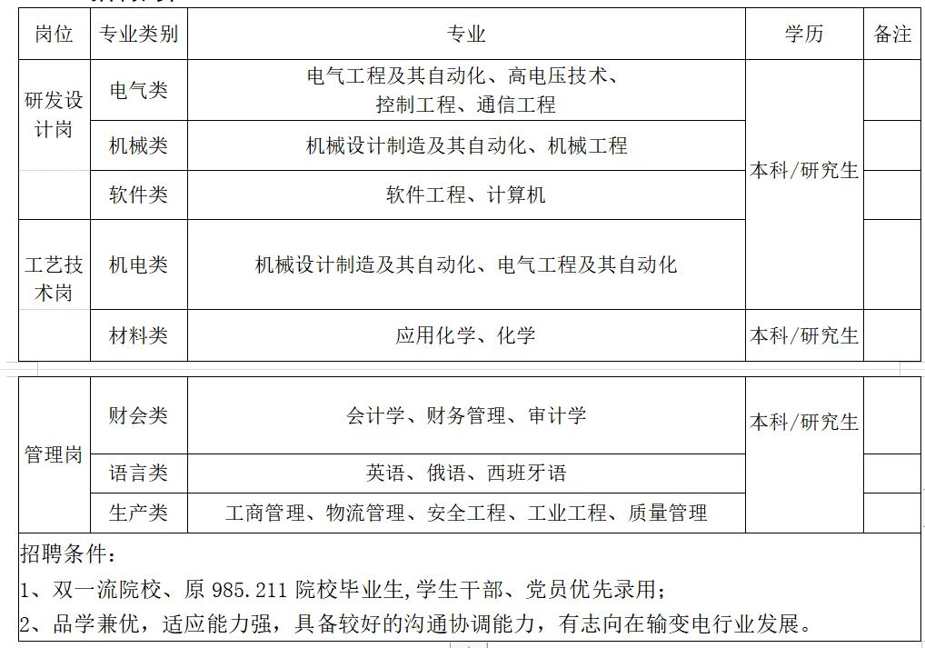招聘单位:山东泰开高压开关有限公司 招聘时间:2022年3月2日10:00-12:00 招聘地点:J8-202 所需专业: