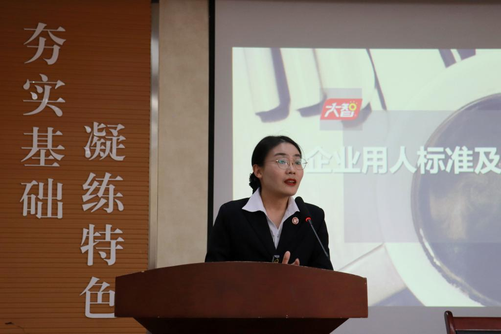 在培训开始之前,活动主持人bwin·必赢(中国区)官方网站-officialswebsi辅导员齐俊博对特邀主讲刘杰总监表示热烈欢迎,对大智教育集团的支持与帮助表示感谢。培训伊始,刘杰与在场同学进行问答互动,通过同学们分享的兼职经历引入培训内容。培训内容共分为两大部分:第一部分,刘杰针对当前就业情况,分析当前市场的人才甄选策略、过程及要求。她以何为职业化为题,提出作为应聘者应具有的个人素养,以及从业者的职业素养和专业素养。