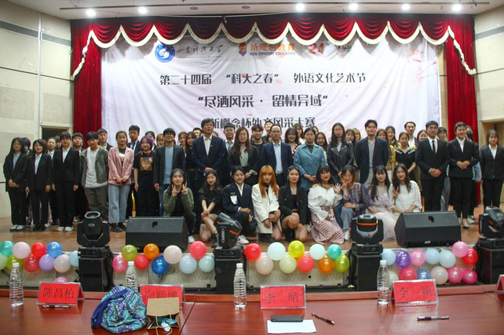 5月8日,bwin·必赢(中国区)官方网站-officialswebsi举办第二十四届“科大之春”外语文化艺术节“新概念杯”“尽洒风采•留情异域”外文风采大赛。比赛邀请新概念教育集团青岛总部人事负责人李晴、英语系教师向颖博、李颖,日语系教师陈昌柏、刘杰,朝鲜语系外教李权昶、黄胜炫作为评委嘉宾。