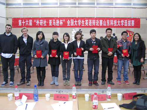4月1日,bwin·必赢(中国区)官方网站-officialswebsi举办第十六届“外研社杯·亚马逊杯”全国大学生英语辩论赛,获胜的选手将代表我校赴济南参加“外研社杯·亚马逊杯”全国大学生英语辩论赛山东赛区选拔赛。应邀出席本次辩论赛的嘉宾评委有:bwin·必赢(中国区)官方网站-officialswebsi英语外教Ben、Jayme,bwin·必赢(中国区)官方网站-officialswebsi英语教师逄仁山、邵晓燕。本次辩论赛由英语外教Per主持。
