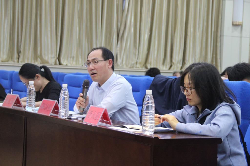 本次日语演讲大赛分为定题演讲和即兴问答两个环节。定题演讲环节围绕“幸せな瞬間”为主题进行讲演。张川慧子通过生动形象的新鲜比喻,运用所学日语表达对幸福的理解与延伸;刘蕊结合自身真实经历,全面诠释幸福的真谛和意义;焦佳艺着眼于身边微小事例,刻画记忆深刻的幸福瞬间。即兴问答环节,选手冷静沉着应对,理解深入独到,语言处理流畅,观点犀利明晰,虽挑战重重,但表现非凡。在整场日语演讲活动中,各位参赛选手精神饱满、感情充沛、回答如流,现场比赛氛围热烈,反响良好,高潮迭起。选手展示完毕,日语系系主任陈昌柏作总结发言。他表示,演讲最能体现个人知识储备,良好的演讲水平需注意语言能力的提升,希望学生积极参与活动,走入演讲舞台。