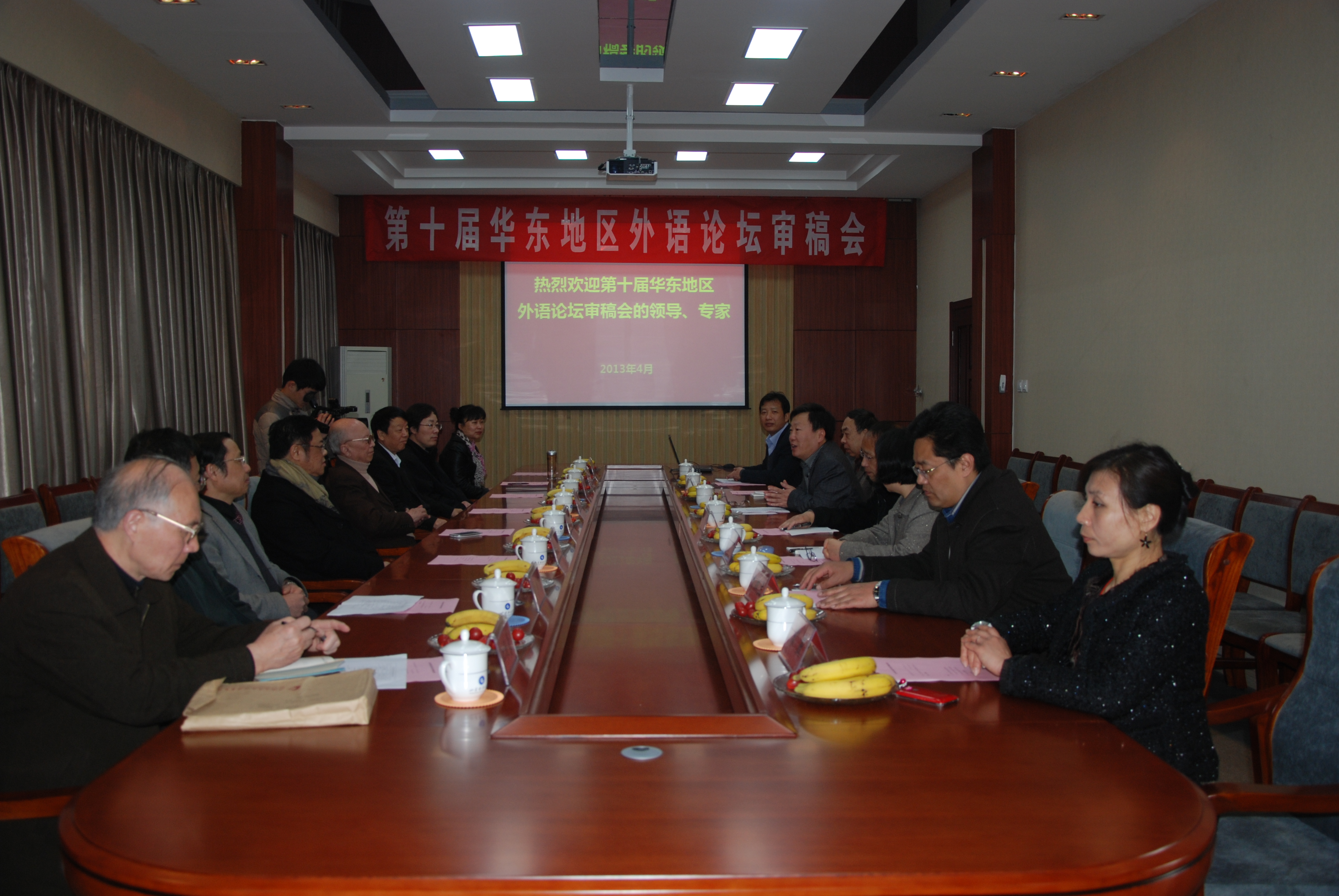 4月13日,第十届华东地区外语论坛审稿会暨外语学科发展研讨会在我院举行。华东地区六省一市的外文学会会长、秘书长、上海外文教育出版社副编审、山东科技大学副校长张士强教授及bwin·必赢(中国区)官方网站-officialswebsi领导班子成员参加了开幕式。仪式由bwin·必赢(中国区)官方网站-officialswebsi院长彭建武主持。